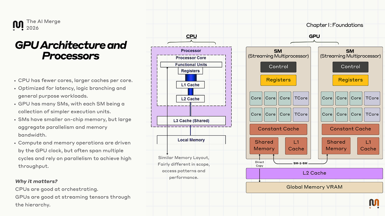Most content about GPUs skips a critical layer. It tells you that GPUs are important, then skips straight to cluster-scale diagrams and benchmark charts. That leaves a gap in the middle, which I’m aiming to close with this presentation.