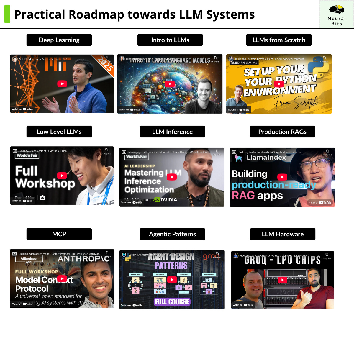In this article, I’ve grouped 11 long-term videos, with some being entire playlists that revolve specifically around LLM Systems. The goal of these is to provide a progression of resources into advanced LLM concepts, and I think they’ll help you as much as they’ve helped me pick up new concepts and reinforce the ones I already knew.