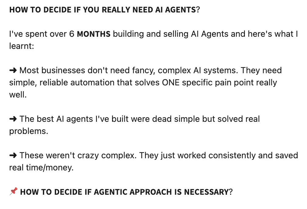 Want to guess what the people who so confidently talk about AI Agents and AI have in common? You’re right, a big audience, paid bootcamps, and 🥁: