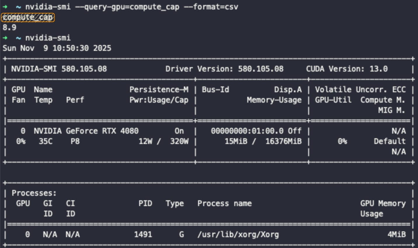 nvidia-smi --query-gpu=name,compute_cap --format=csv