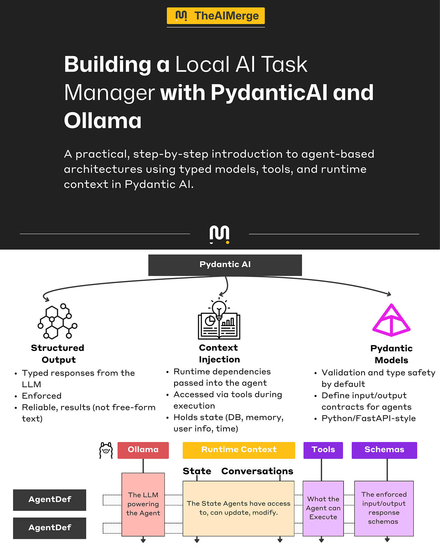 In this article, we will start with a small agent-powered app, a Task Manager that runs local models through Ollama and uses PydanticAI for the agent layer. The AI handles intent such as adding a task, marking work complete, or listing overdue items.