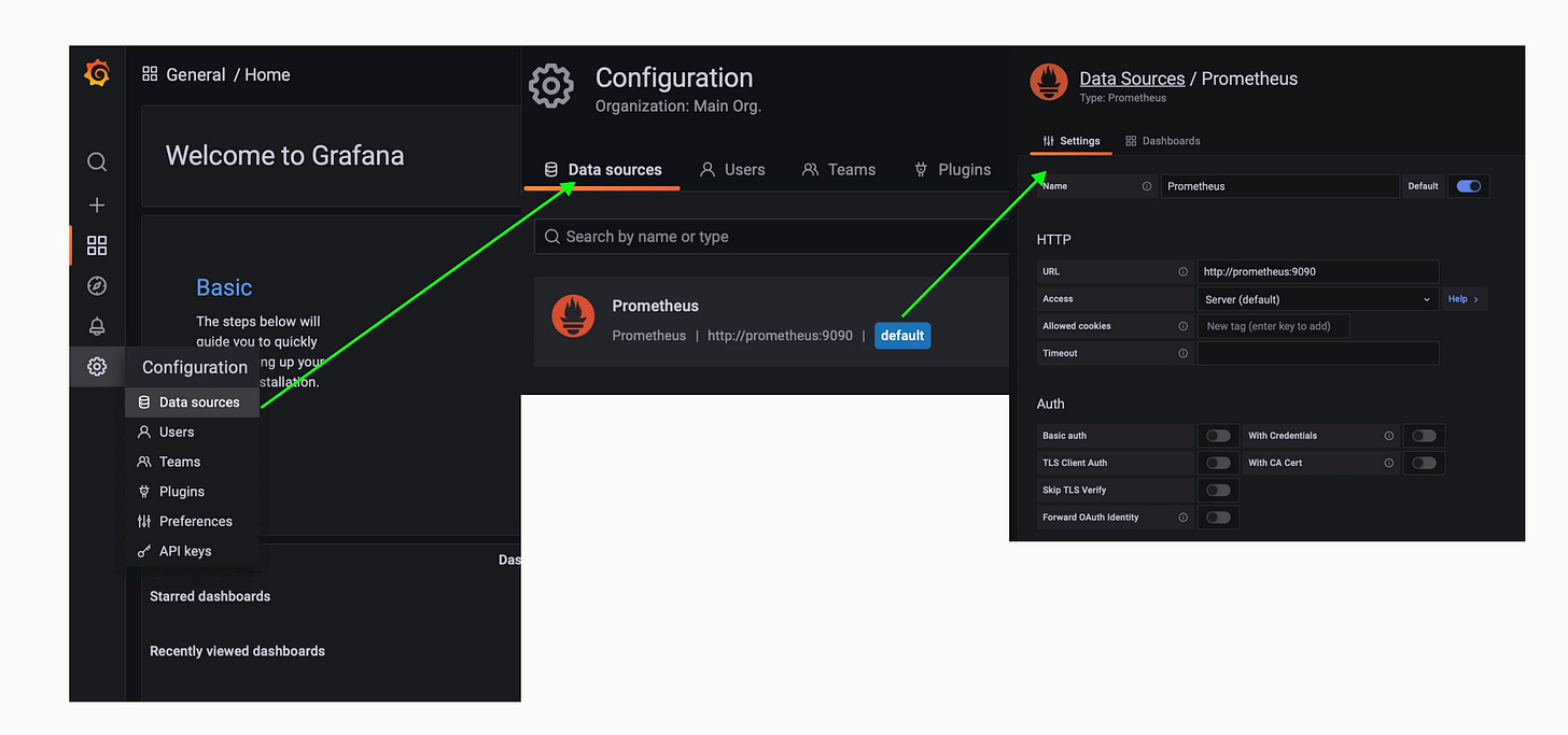 Now that we’ve specified targets, let’s add Prometheus as a default data source in Grafana.