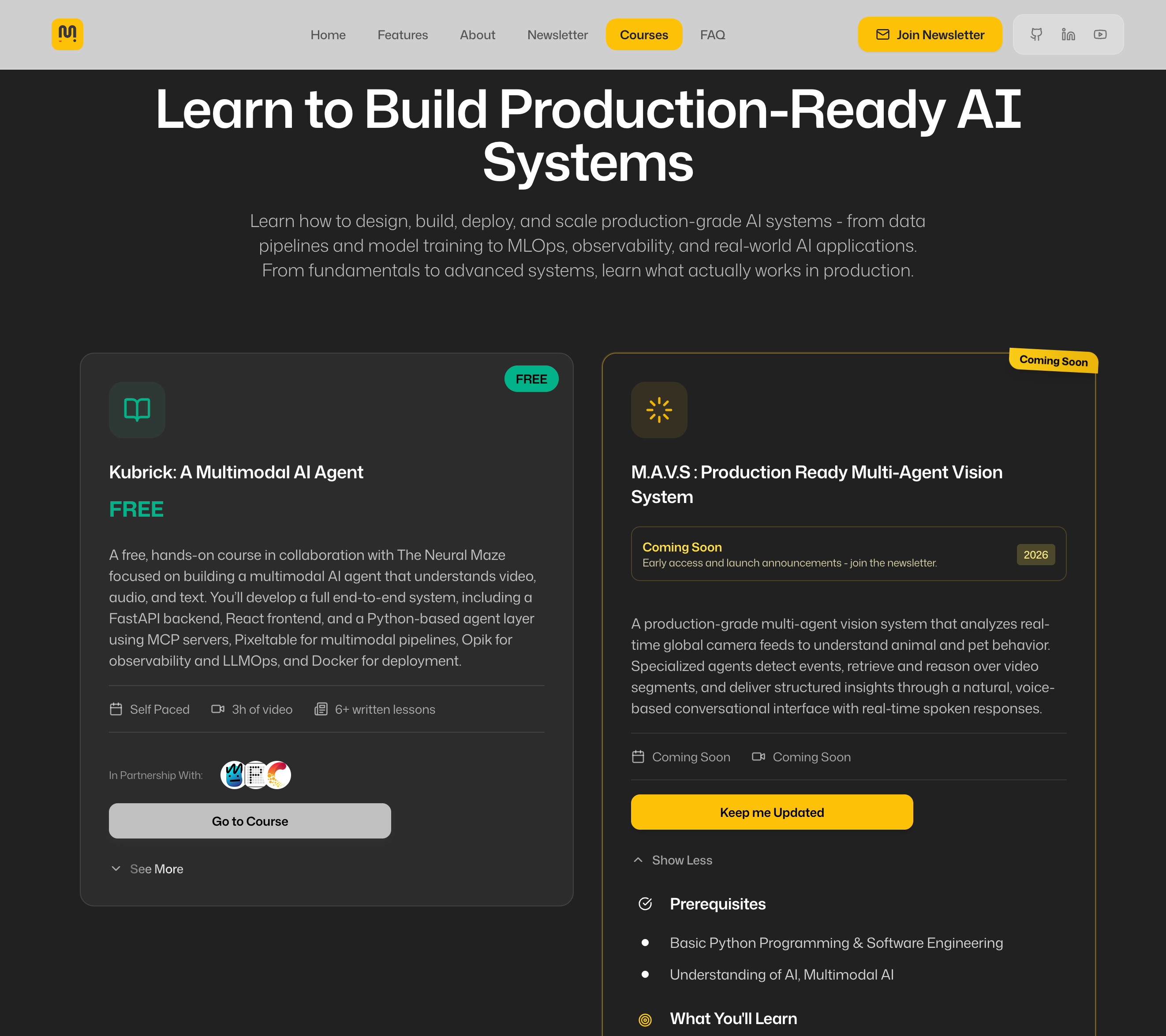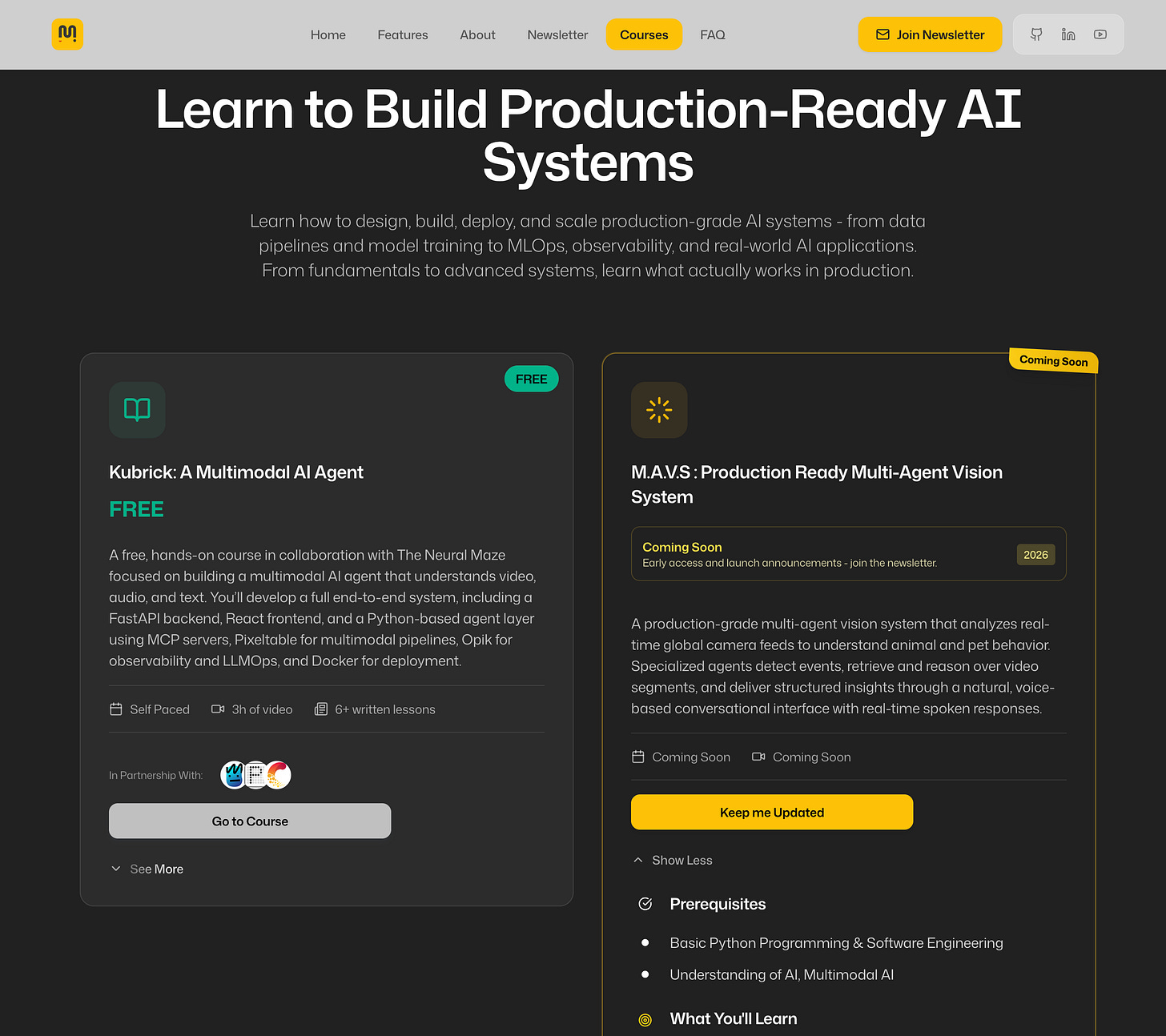 The website ties all the channels together. It provides a quick and strong intro to everything you could learn, build, and apply.